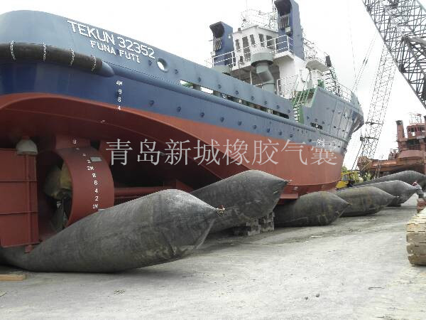 目前船用氣囊廣泛應用于港口建設中的沉箱頂升、移運,下水等領域。